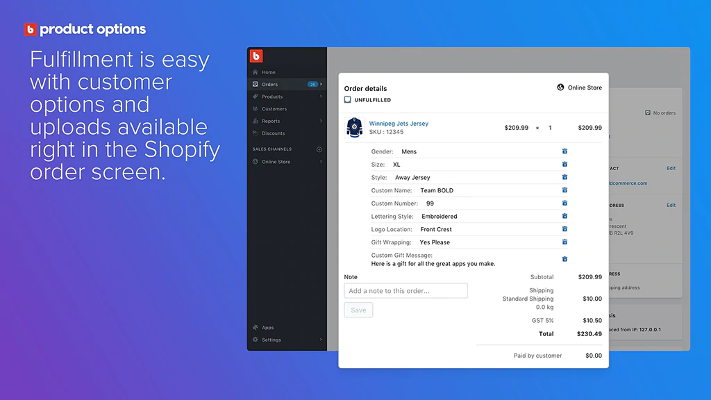 • Shopifyの注文画面から顧客情報のアップロードやカスタムフィールド情報を呼び出し受注から配送までのプロセスを簡素化