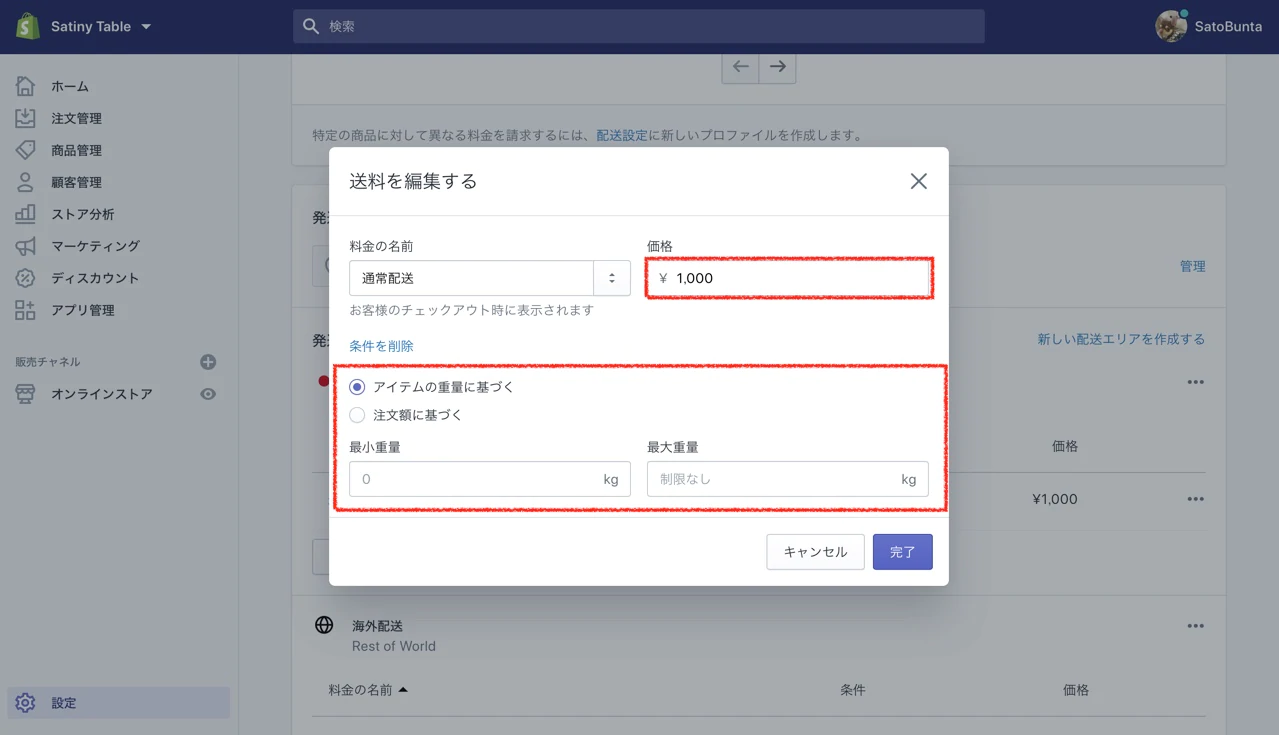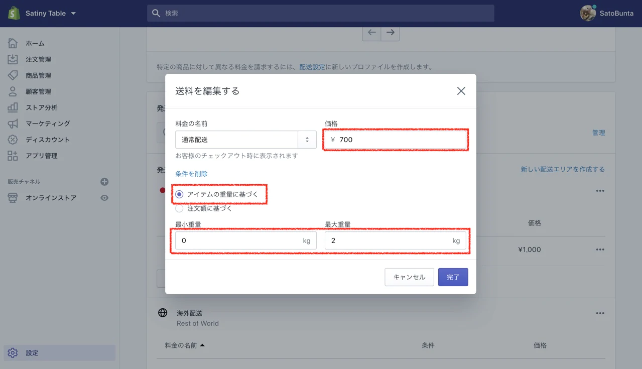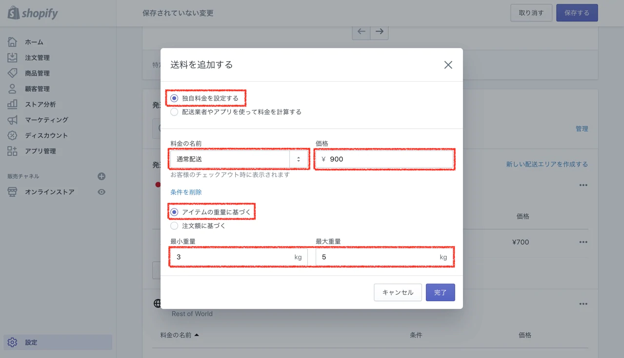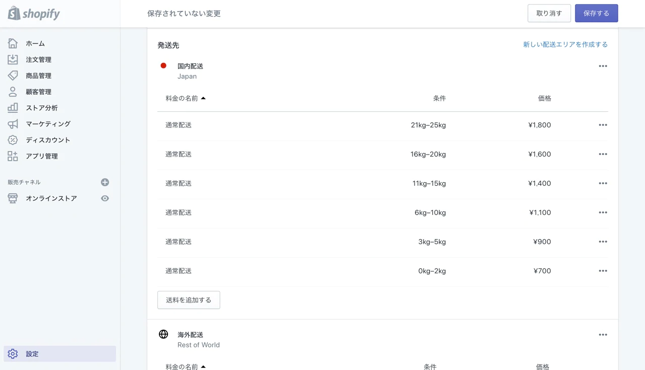 Shopiyのストアで重量や注文金額に基づいて異なる送料を設定する方法