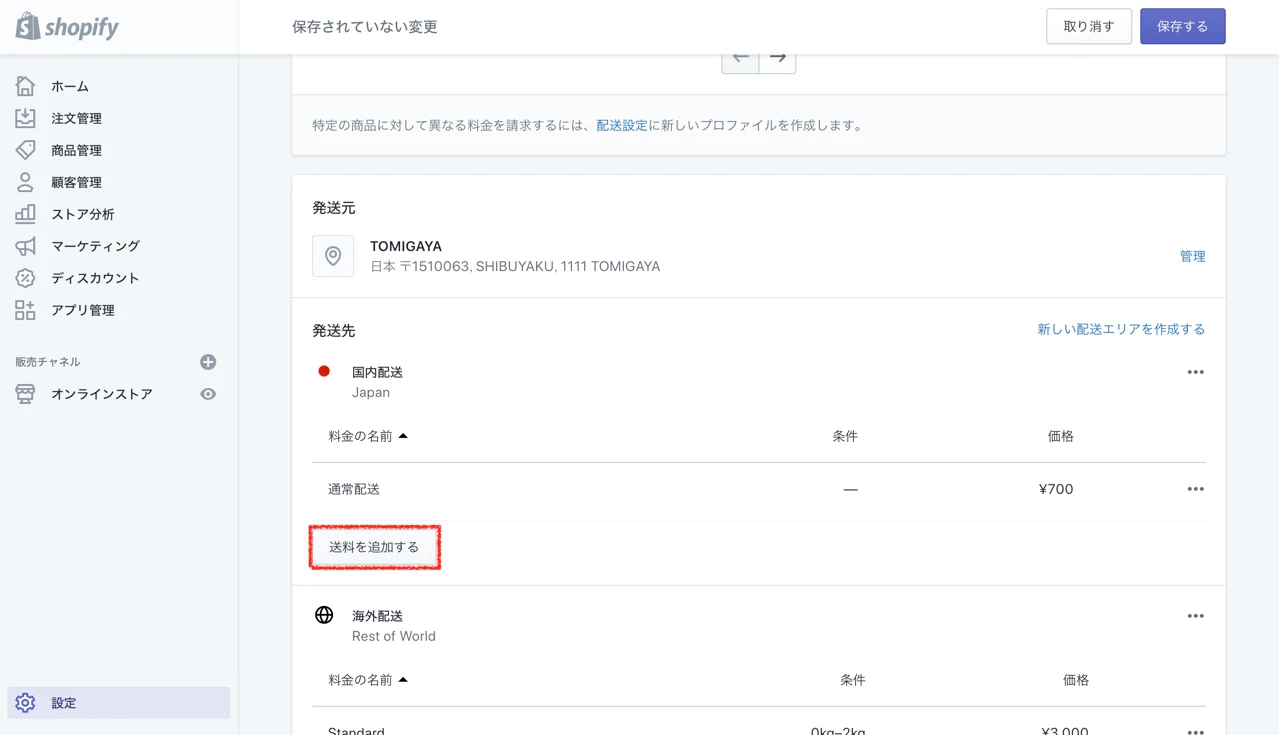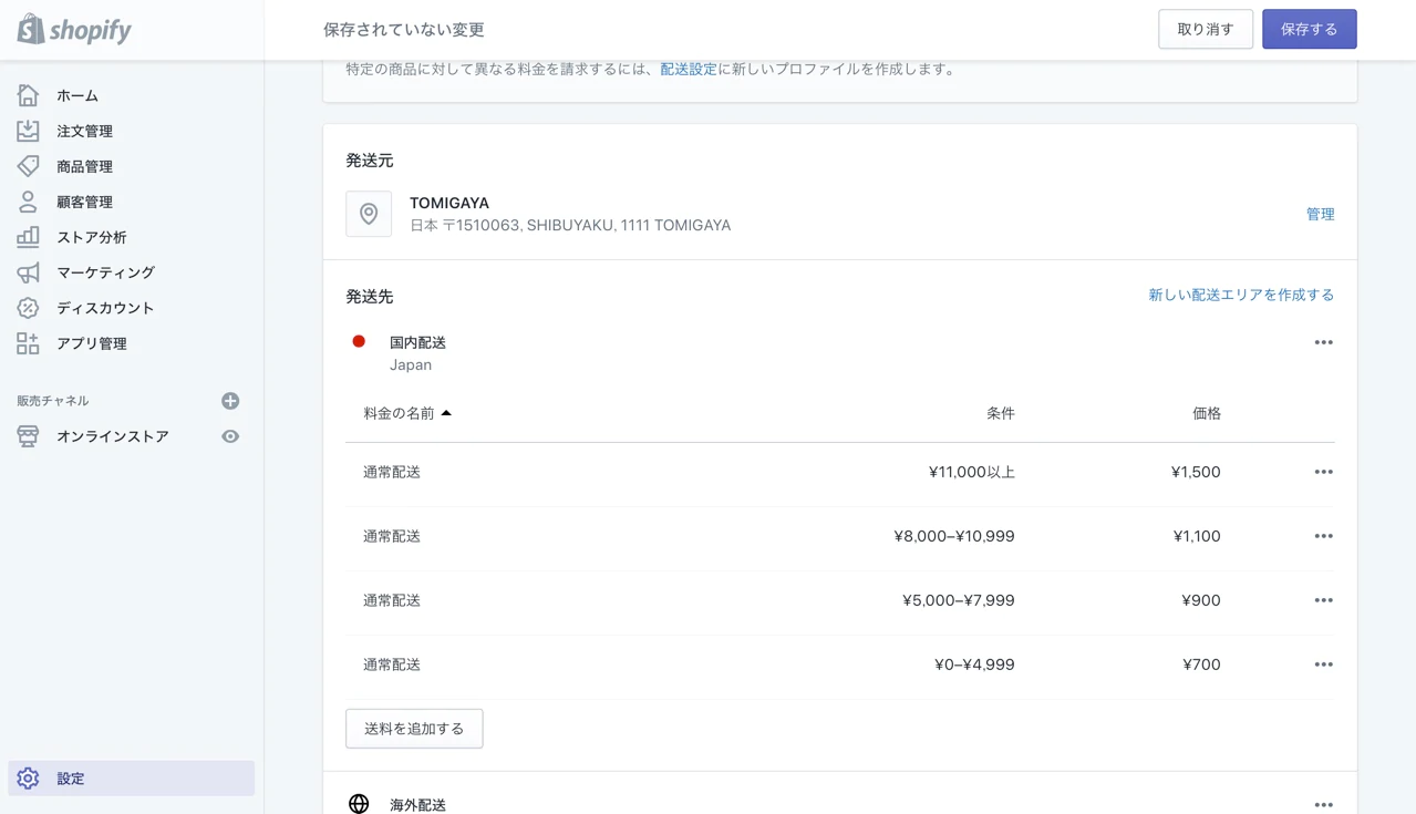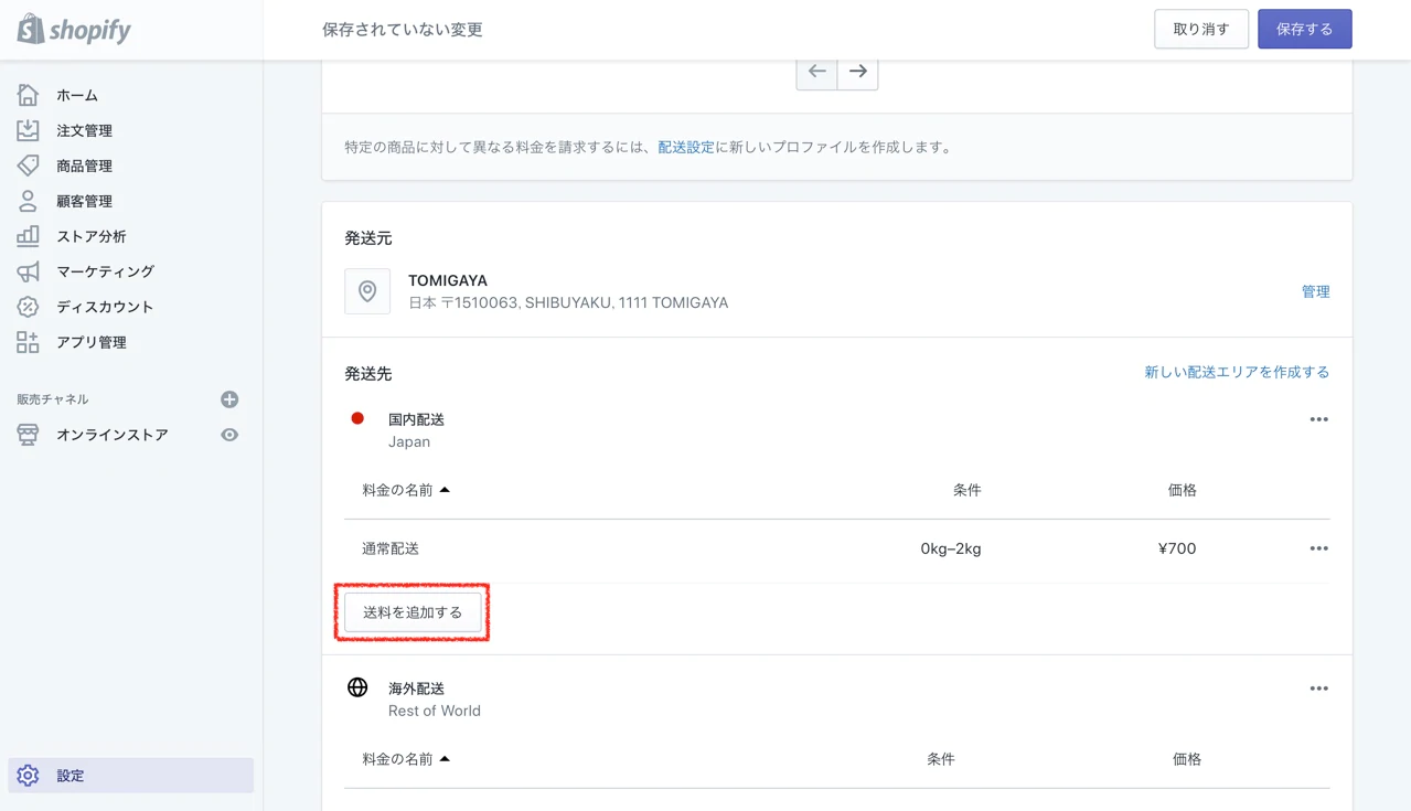 【関連記事】Shopifyのストアで商品別に異なる送料を設定する方法